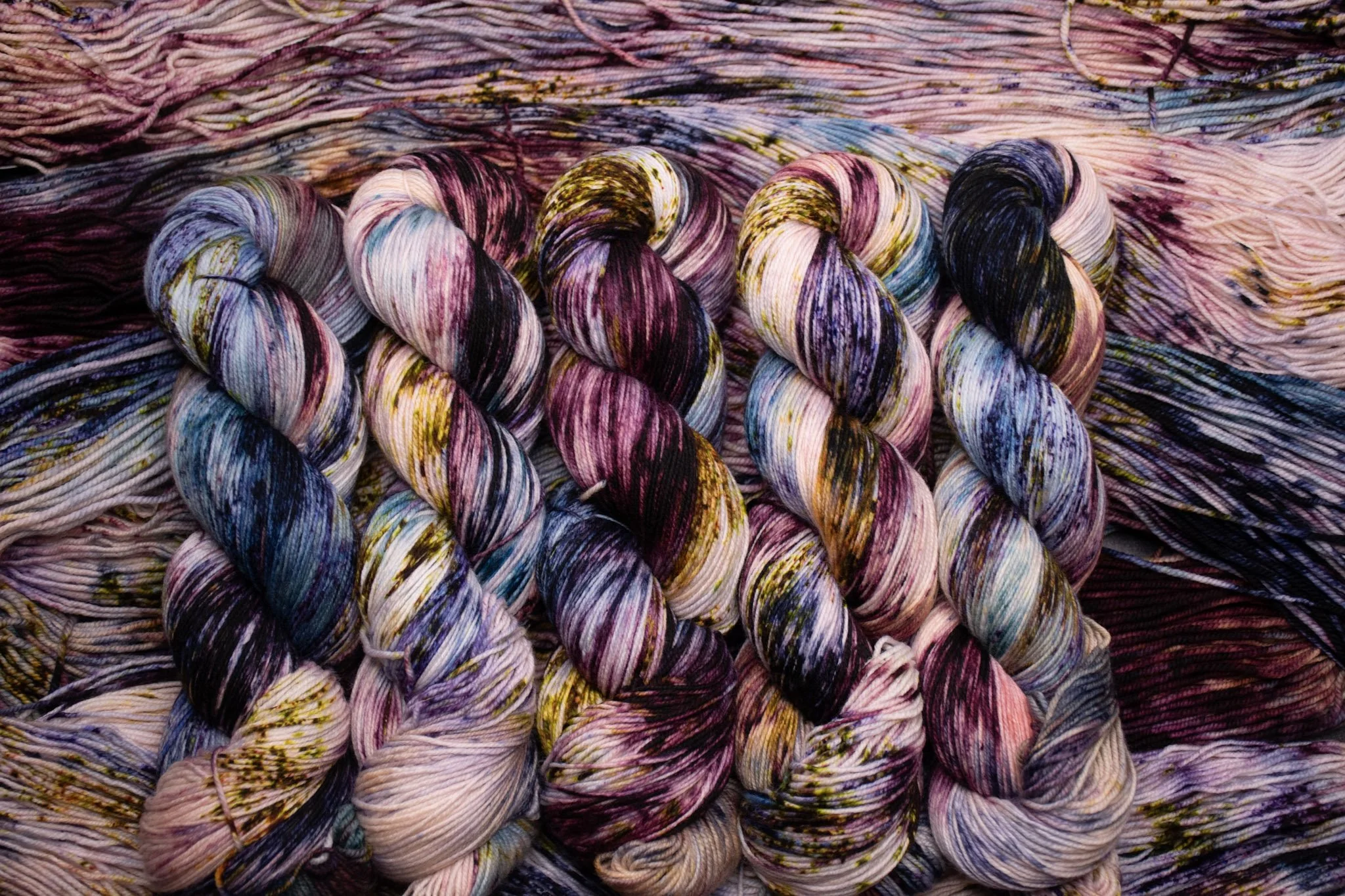 Each skein will vary in saturation and speckling, even if they are from the same dye batch, always rotate your skeins every few rows for a seamless blend of color.