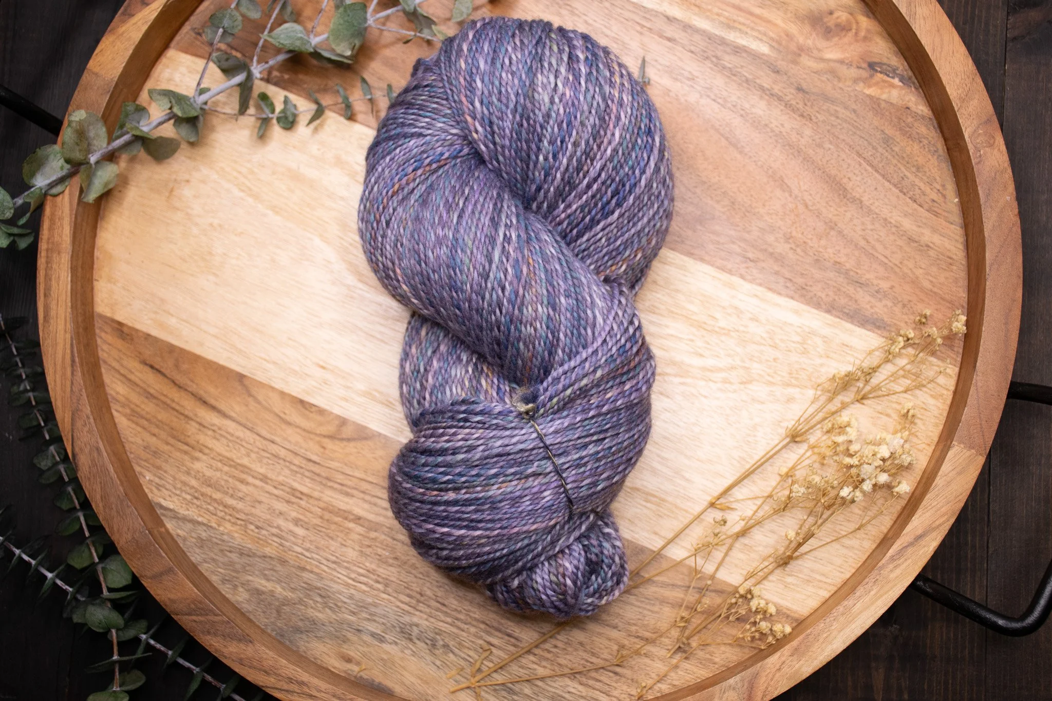 Spun from 100% organically produced fine Merino wool that has been dyed to organic standards using Greener Shades acid dyes, and lovingly plied by hand. Every skein is unique and one-of-a-kind