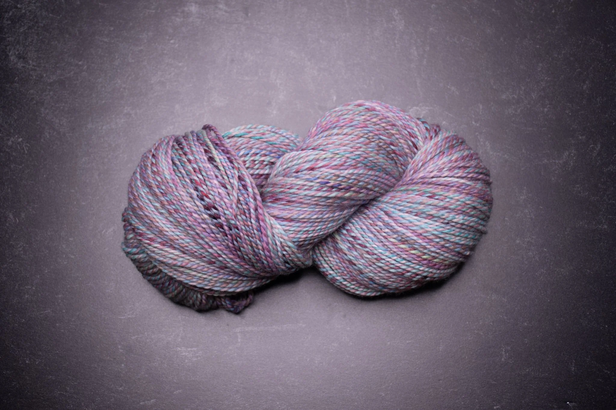 Spun from 100% organically produced fine Merino wool and lovingly plied by hand. Every skein is unique and one-of-a-kind. Non-superwash. This skein features a stunning mix of coral, pink, peach, orange, and yellow.